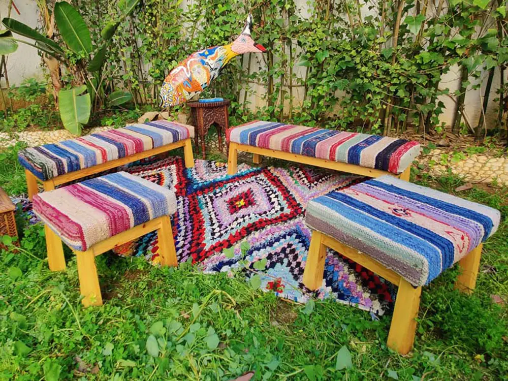 Ideal as an accent seat, footrest, or low coffee table, this ottoman enhances interior design with a cultural touch. Whether placed in a chic boutique hotel, luxury lounge, cozy bedroom, or creative workspace, its bold colors and handmade texture add a layer of warmth, tradition, and personality.